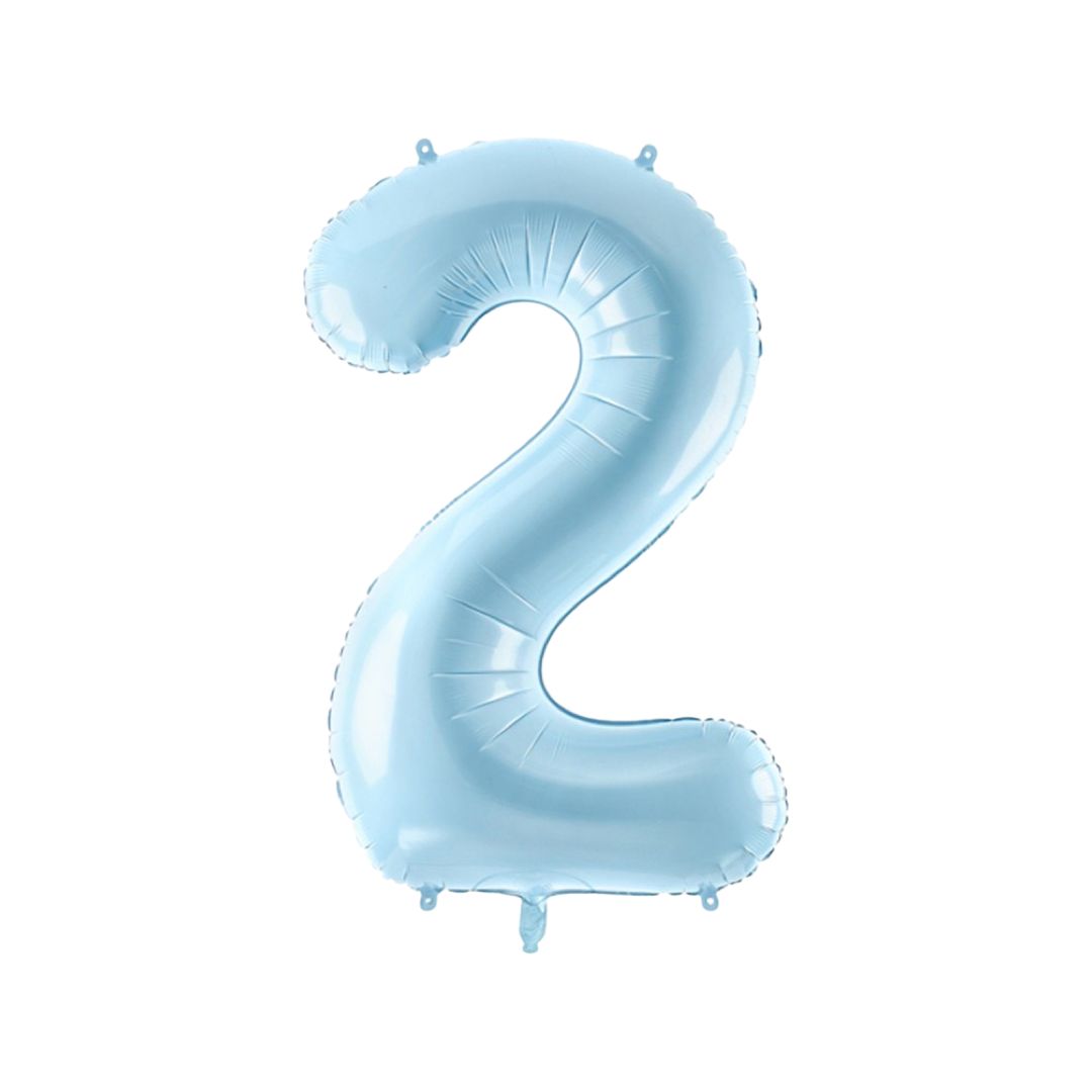 Baloane Folie Albastru Pastel, Cifra 2 - 86 cm