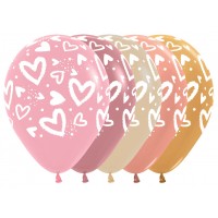 Baloane Latex Sempertex, 30 cm, Inimi Stralucitoare, Asortate - Set 5 Buc