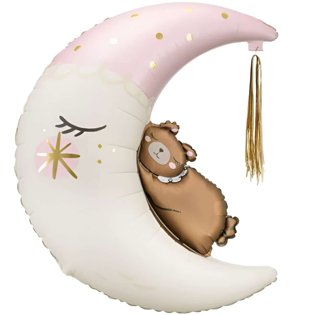 Balon Folie Figurina Semiluna cu Ursulet, Nuanta Pastel, 86 cm